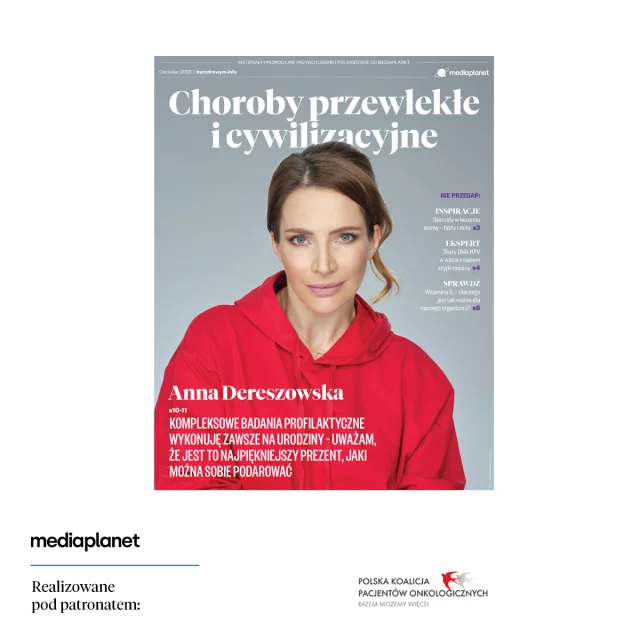 Na okładce znalazła aktorka Anna Dereszowska, która od lat wspiera inicjatywy prozdrowotne, podzieliła się swoimi sposobami na życie w zdrowiu.